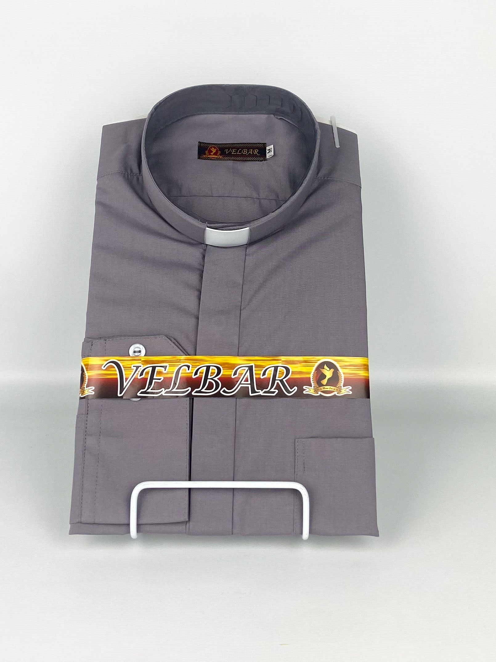Camisa clerical en un solo tono confeccionada en dacrón holandés.